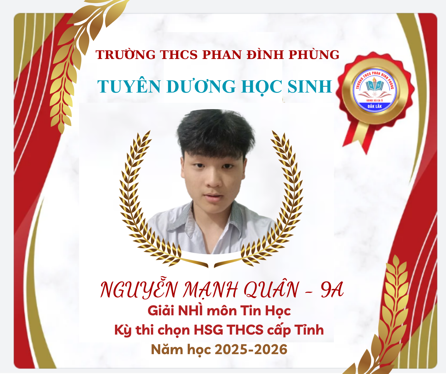 🌟 RỰC RỠ THÀNH TÍCH HỌC SINH GIỎI CẤP TỈNH NĂM HỌC 2025 – 2026 🌟