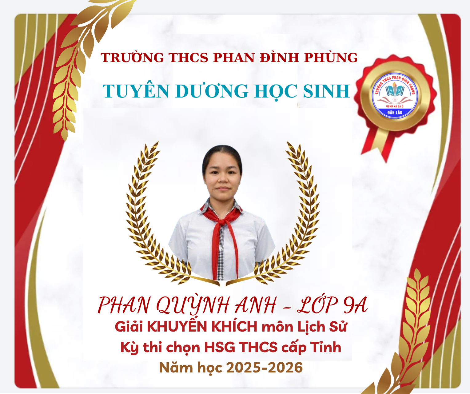 - Em Phan Quỳnh Anh – Môn Lịch sử