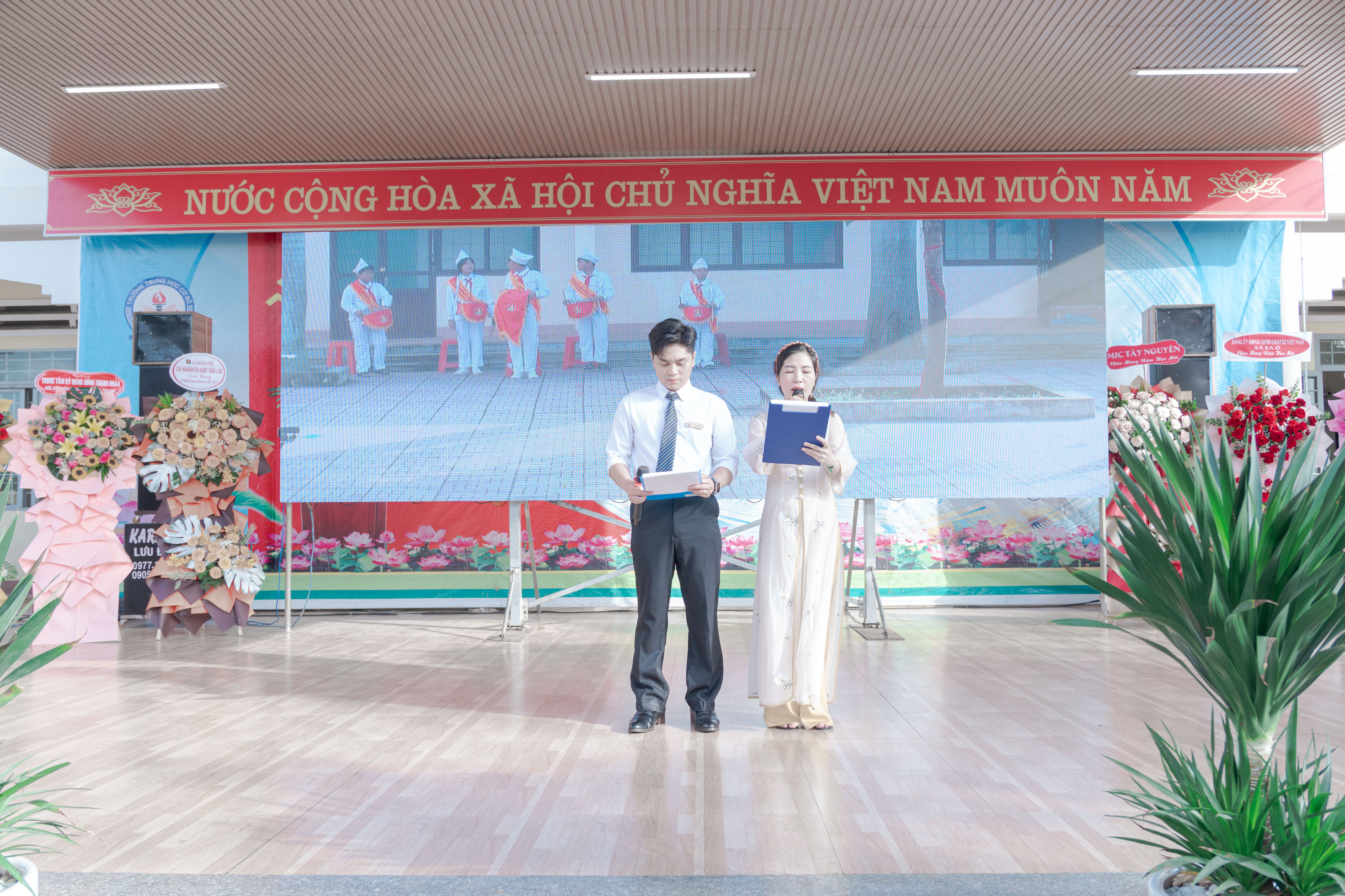 Trong không khí trang nghiêm của buổi lễ, các đại biểu, thầy và trò nhà trường xúc động lắng nghe phát biểu chỉ đạo và đánh trống khai giảng năm học mới 2025-2026 của Tổng bí thư Tô Lâm và được xem bác trao tặng danh hiệu cao quý của Đảng và Nhà nước cho Bộ Giáo dục và Đào tạo.